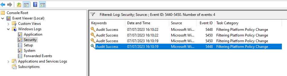 5450 : A Windows Filtering Platform sub-layer has been changed.